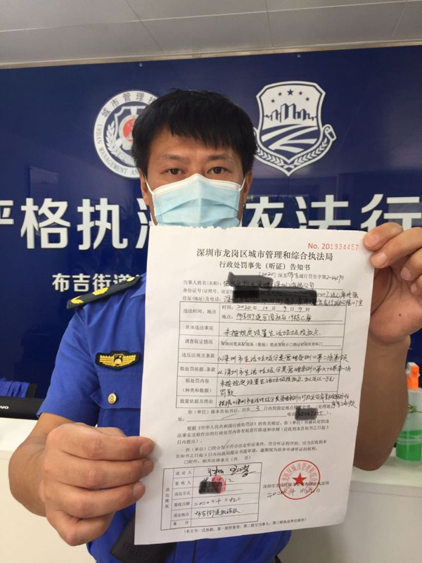 10月9日上午8點半,深圳市城市管理和綜合執法局聯合龍崗布吉街道執法隊在可園小區開出深圳市首張垃圾分類罰單,該小區物業管理公司因未按照要求設置分類投放點等違法行為擬被頂格處罰1萬元!