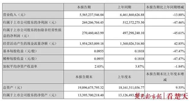 今年上半年,燕京啤酒业绩不佳,营业收入为55.65亿元,同比下滑13.88%;归属于上市公司股东的净利润2.69亿元,同比下滑47.46%。