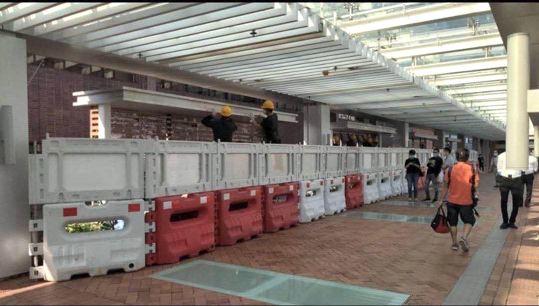 「連儂牆」已被清理,現場以水馬及屏風圍封。