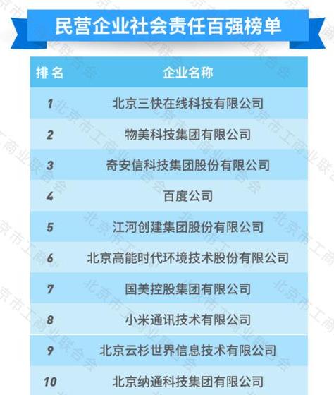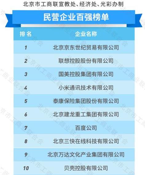 10月10日下午,北京市工商联发布了2020北京民营企业百强榜单,同时发布的还有民营企业科技创新百强、民营企业文化产业百强、民营企业社会责任百强榜单,以及今年新增加的民营企业中小百强榜单。