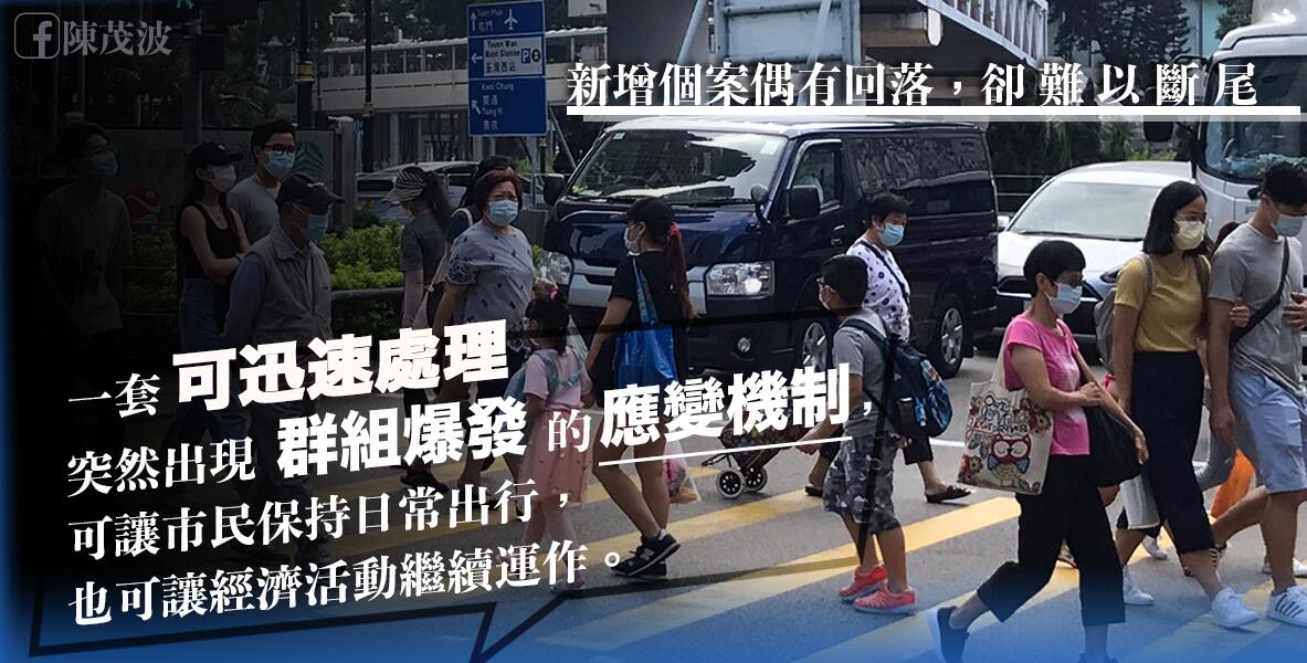 目前,香港正處於「一放鬆就反彈,一反彈就收緊」的惡性循環,令經濟復蘇無從談起。這大半年市民和企業正承受沉重的壓力,問題必須有解決的出路。陳茂波認為,需要建立一套可迅速處理突然出現群組爆發的應變機制,當中包括提供大規模且徹底的檢測,以及風險辨識標籤,讓確定沒感染的市民能保持日常出行,也讓經濟活動可繼續。