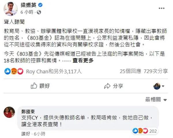 今日梁振英《803基金》先從傳媒報道已經被告上法庭的刑事案開始,公布這些教師信息。