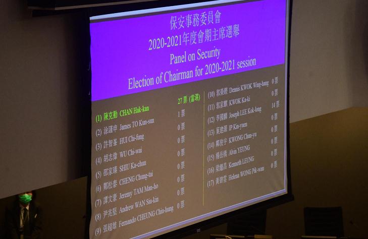 立法會保安事務委員會選出主席,由陳克勤勝出。