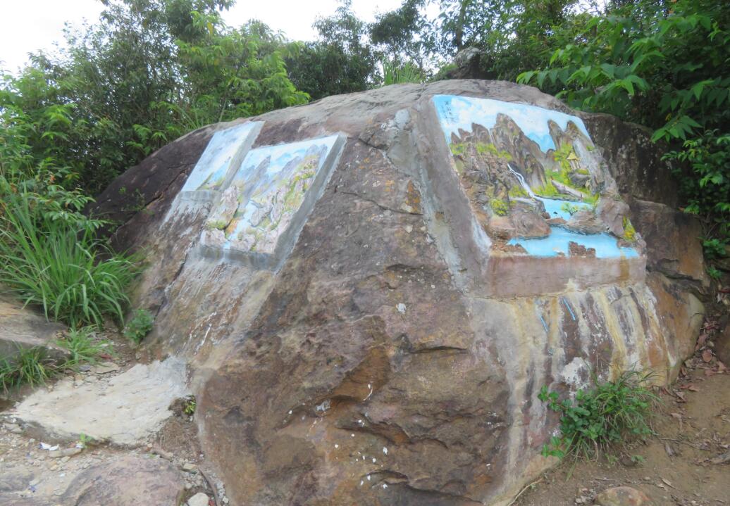 細看塗鴉物,實為中國傳統山水畫風的岩石畫,一些畫在石頭表面,一些畫在石屎板塊上,再與石頭融合,總計有9幅,畫作有新有舊,以能辨別的字迹看,最早及最新的繪畫日期分別是2016年5月6日及2020年6月15日。