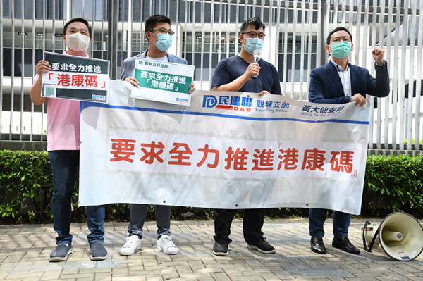 民建聯立法會會議員柯創盛、民建聯副秘書長黎榮浩,聯同民建聯九龍東團隊,今日(15日)下午到政府總部請願,要求當局交代「香港健康碼」的籌備進度,並要求加快推進「香港健康碼」,確保相關技術和互認安排準備就緒,並待本港疫情紓緩、穩定後可以即時推出。