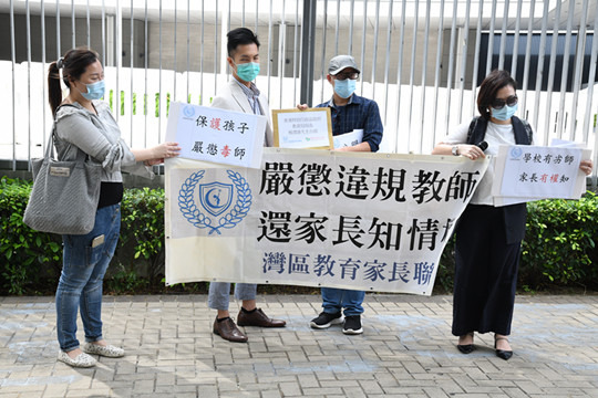 灣區教育家長聯會及一群反對政治勢力滲透校園的家長今日(15日)到政總請願,並向教育局遞交請願信,要求局公平公正對待家長投訴,嚴查嚴辦所有涉嫌教育失德個案,並公開教師牽涉刑事罪行、失德的所有個案詳情,包括教師資料、所屬學校、懲處結果,還家長與公眾知情權。