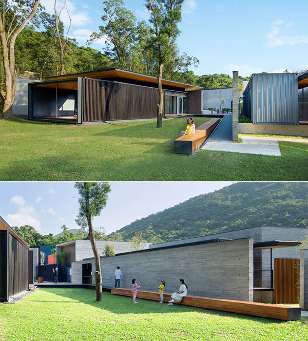 圖上是多用途室,圖下是辦事處及接待處,兩楝建築物之間的草地保留下來,作戶外活動之用。
