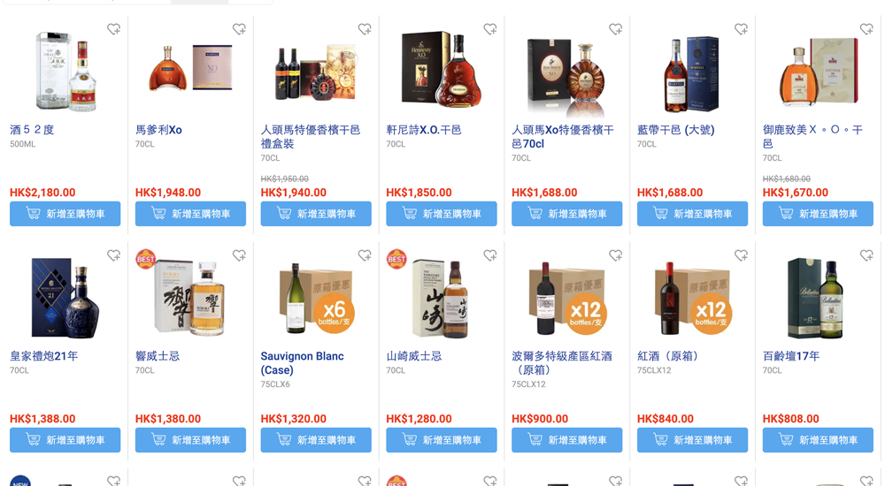 若考慮「高價」的話,那麼軒尼詩或者馬爹利這些過千元的酒類預計會成為大熱之選,翻看超市網上商店「酒52度」價格更高達港元$2180,若果活動當日,若超市可供選擇酒類,那麼就一定要掃盡酒架,搶到幾枝已過萬元了!