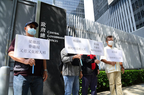 兩個團體希望立法會主席梁君彥將反對派議員驅逐出立法會,還大家一個乾淨和諧的議會。(記者 葉珮如)