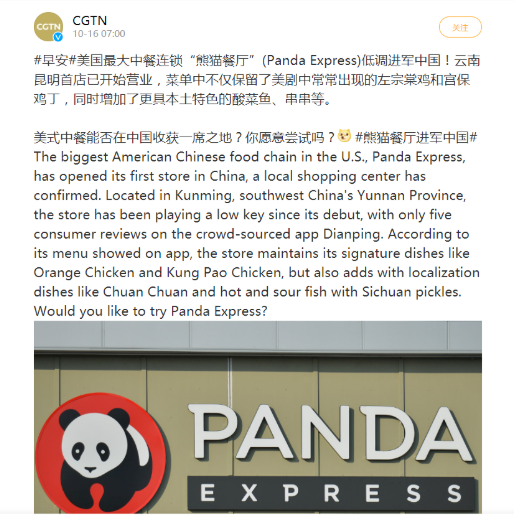 但据澎湃新闻英文版SixthTone报道,Panda Express就在昆明开店一事回复称:「我们目前没有任何在云南昆明开店的计划。」