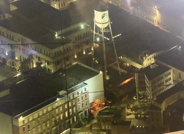 報道稱,警察將燈光聚集在建築物高層的一扇窗戶,同時派出了警犬進入搜查。目前,洛杉磯警方還未對此事作出回應。(圖源:推特)