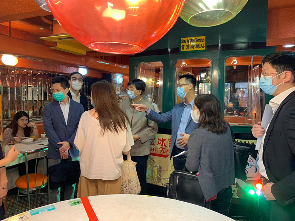 在餐飲處所,袁國勇親身視察了飲食業使用電子交易、UV-C消毒燈、執枱專員、換氣率及換手套等等加強的防疫措施。稻苗學會主席徐汶緯在場親自講解及表達業界就政府及專家的措施建議,能夠實行的都會採納及應用,務求令食肆杜絕傳播,不再被視為高風險場所,促使政府可放寬對食肆的限制。(記者 何家驊)