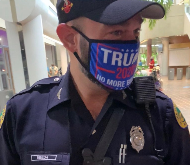 邁阿密一名身穿制服的警員,配戴印有「特朗普2020」的口罩現身票站。