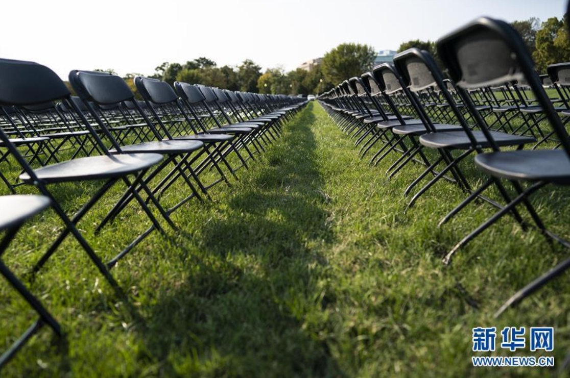 10月4日,2萬把椅子擺放在白宮外南側草坪上,悼念美國超過20萬新冠逝者。