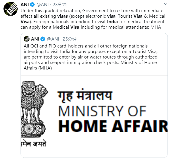 據印媒22日消息,印度內政部將逐步放寬簽證和旅行限制,除電子簽證、旅遊簽證和醫療簽證之外,其他所有現有簽證都將被立即恢復。