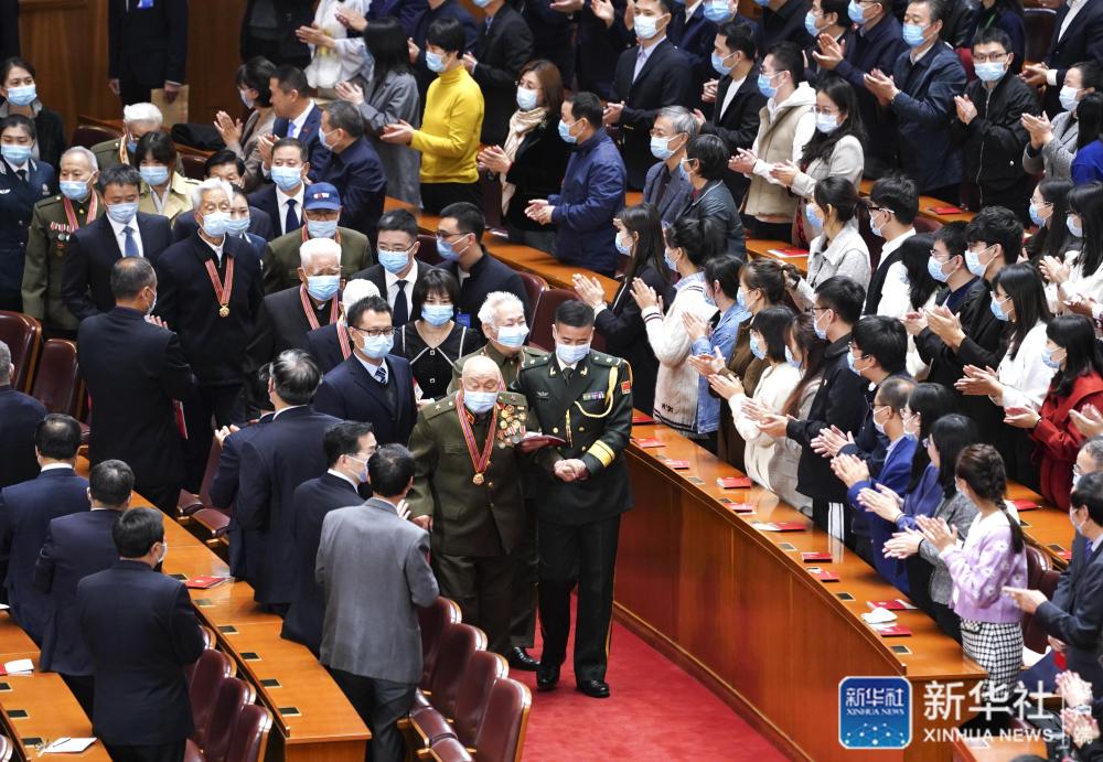 會前,習近平等領導同志會見了「中國人民志願軍抗美援朝出國作戰70周年」紀念章獲得者代表,並同大家合影留念。