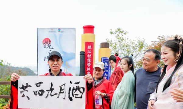 在《幕府登高,仙人指路》的歌聲中,少年們身穿漢服向長輩們敬獻菊花酒。現場別開生面的「辭青之禮」盡顯文化韻味,在中國傳統文化中,金秋的「辭青」與春季的「踏青」相對,體現了人與自然之間的「聚散皆有情」。