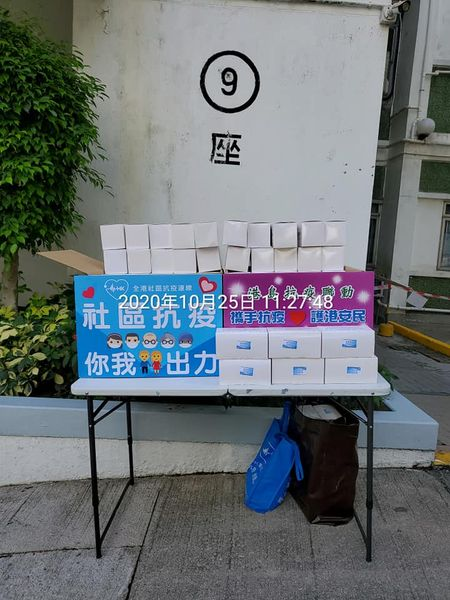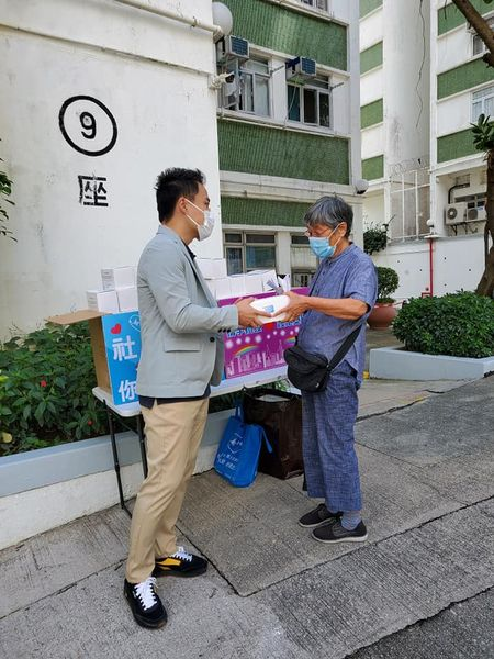 鰂魚涌南豐新邨9座昨日(24日)發現新冠肺炎確診個案,工聯會立法會議員郭偉強与東區區議員王詩展今日(25日)即前往南豐新邨9座向居民派發口罩。郭伟强在社交平台表示,東區區議員王詩展充滿熱忱,與他即時前往南豐新邨9座向居民派發口罩。王詩展亦在社交平台發文,祝願確診街坊早日康復,大廈居民平安無事,社區早日清零。(記者 唐信恒)