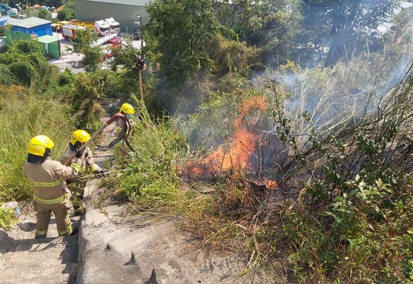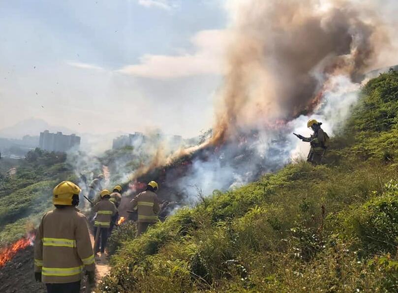 本港在重陽節當日多區發生涉及掃墓的山火,消防員到場救火。(香港消防處FACEBOOK圖片)