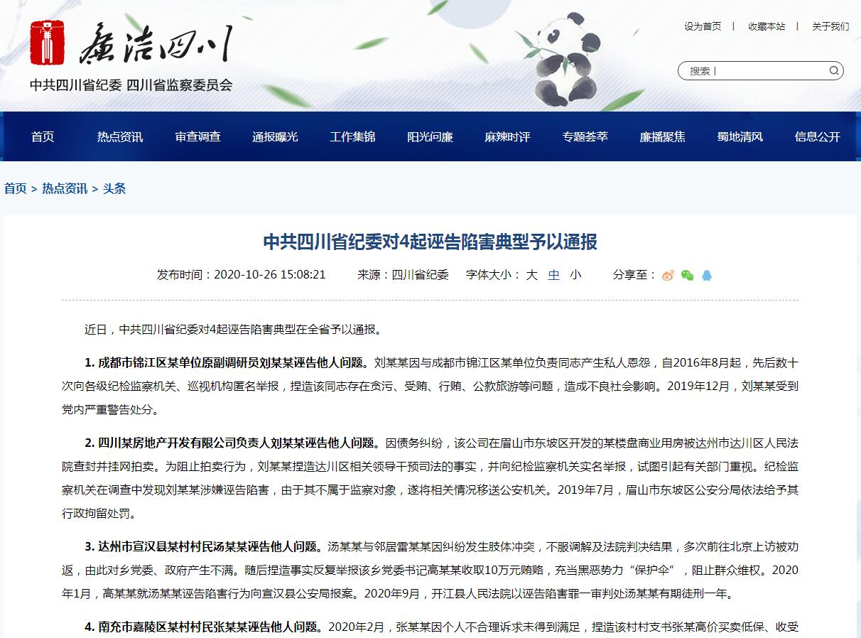 近日,中共四川省紀委對4起誣告陷害典型在全省予以通報。
