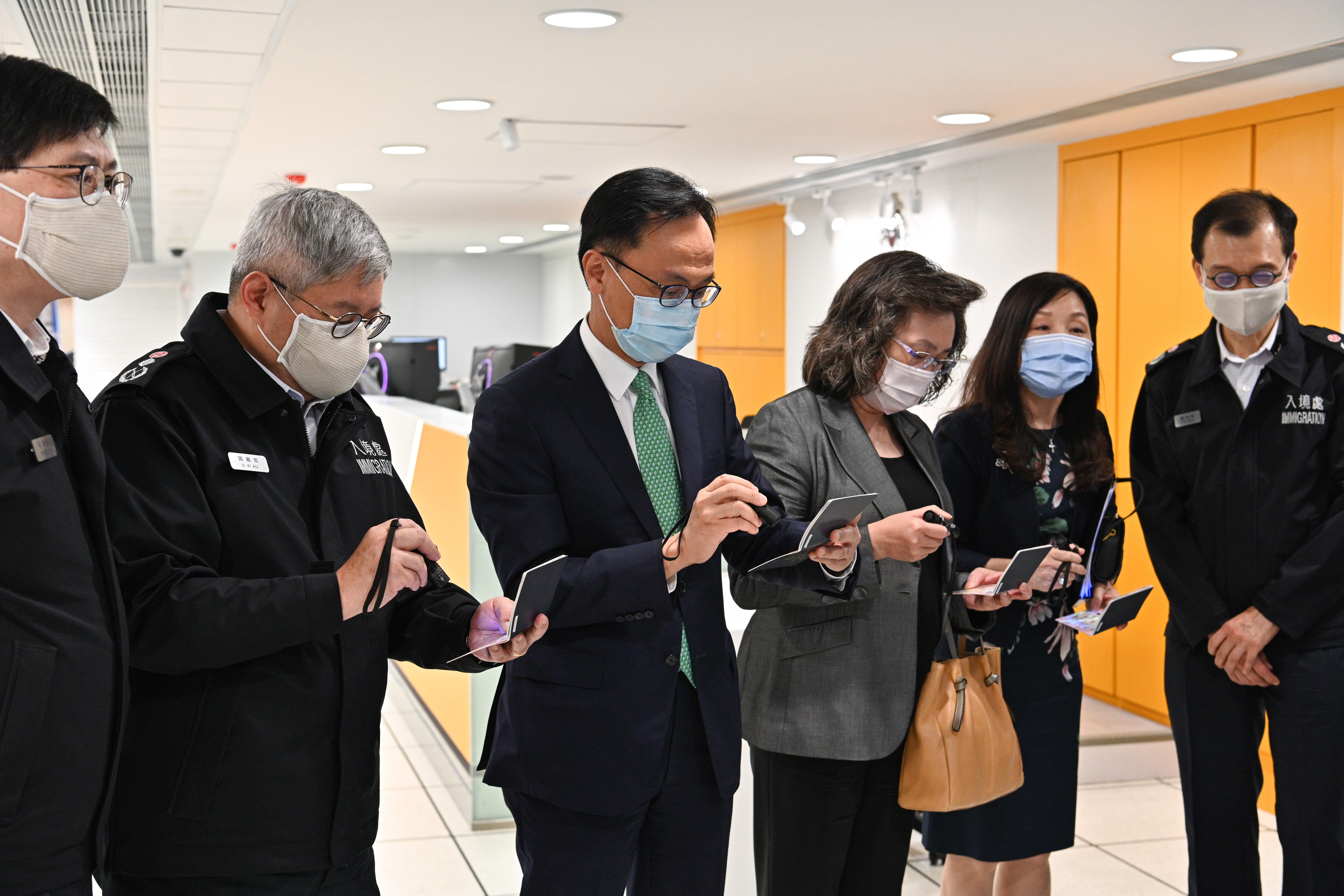 聶德權接着到旅行證件及國籍(申請)組及旅行證件(簽發)組,了解入境處應用科技以採取不同措施進一步優化各種旅行證件的申請流程,並提升服務質素。措施包括即將啟用讓市民以自助形式領取特區護照的服務站,目的在於便利市民和提升部門的工作效率及服務水平,並且在疫情期間保持訪客的社交距離。