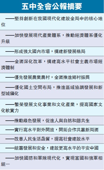 五中全會公報涉港內容,反映港澳在國家規劃中有突出的地位。