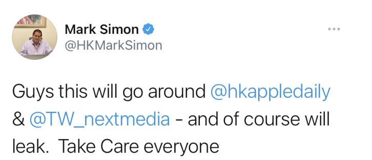 壹傳媒也發表公告稱,Mark Simon並非該集團僱員或授權代表,其言論及行動均不代表壹傳媒。