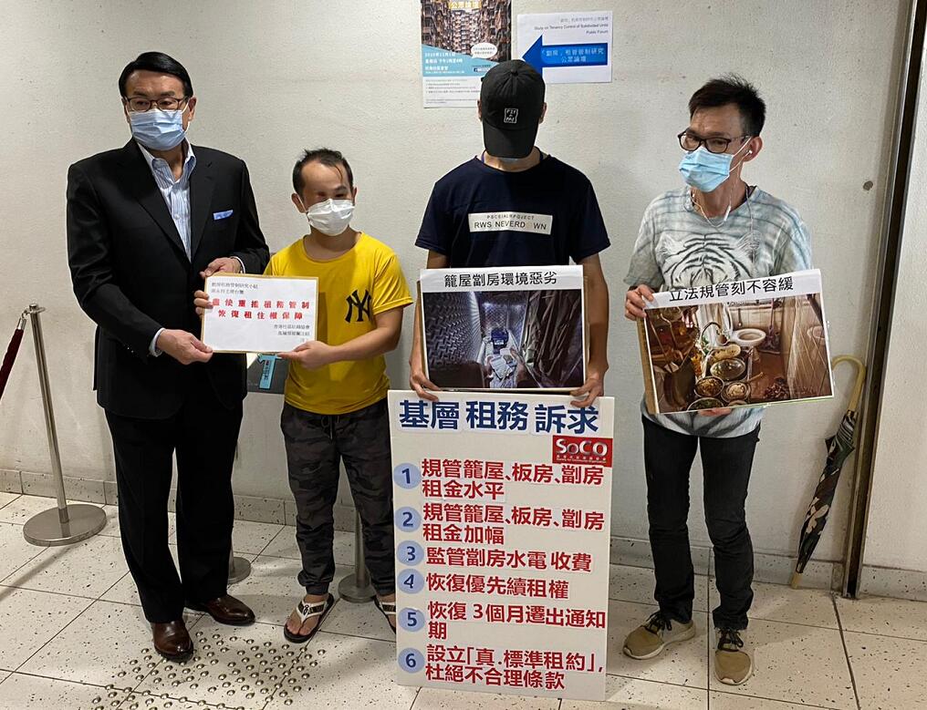 「劏房」租務管制研究工作小組今日(1日)在旺角社區會堂舉行公眾論壇,而香港社區組織協會則在公眾論壇進行前請願,要求政府恢復租務管制,重推租住權保障及設立恆常租金津貼。