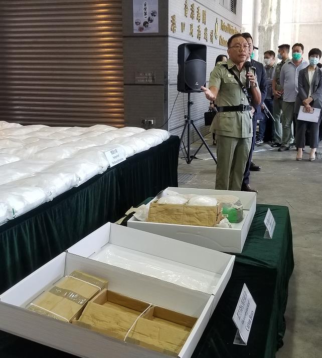 朱賢綿續稱, 由於新冠肺炎疫情關係導致本港多處封關,毒販改變運毒方法,由過去由旅客轉為 現時的海路貨運、郵遞和快遞,海關會繼續與海外執法機構交流情報以打擊毒販違法活動。(記者 區天海)