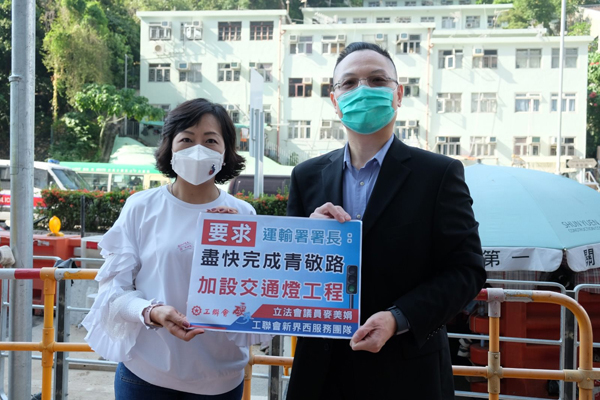 工聯會立法會議員麥美娟在社交平台表示,團隊早前成功爭取在青敬路近聖保祿村的過路處加裝交通燈以保障行人安全。而今日(2日)她便與運輸署代表到達現場實地視察,麥美娟指已促請運輸署加快完成工程,而署方則回覆工程預計會在2021年中完成。