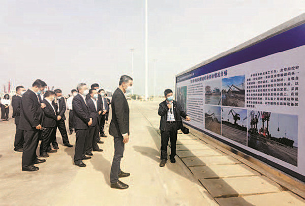 在欽州海砂供香港機場項目裝運碼頭,梁振英詳細詢問了當前採砂和海砂運輸情況。據悉,該項目自2019年9月正式簽訂合作,截至10月29日,目前已向香港國際機場第三跑道填海工程供應46船,共計310.83萬噸海砂。
