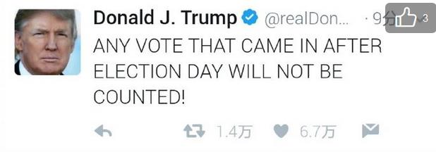 [13:50]沉默一晚上的特朗普連發兩條推特!特朗普稱,我今晚要发表一个声明。一个重大胜利!