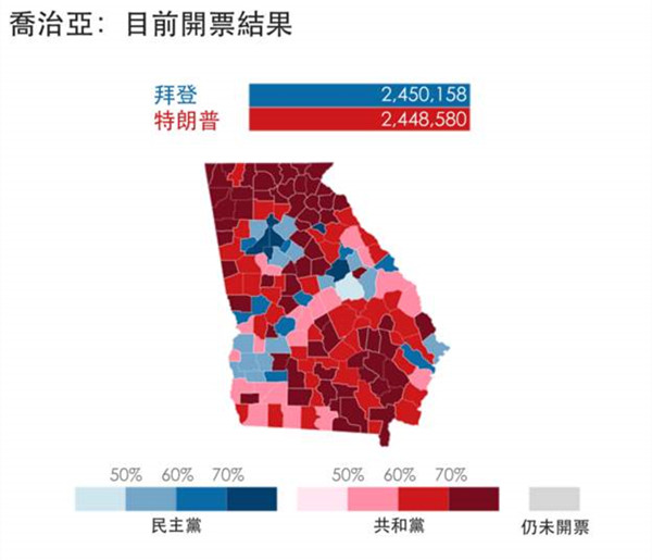 [10:10]美聯社:拜登在佐治亞州的得票率追平特朗普。
