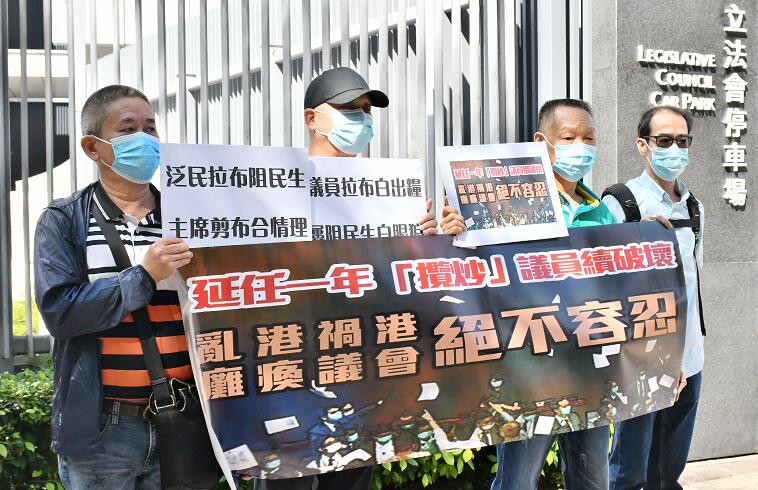 此外,亦有數名市民到政府總部外請願,抗議反對派議員肆無忌憚癱瘓議會,破壞立法會運作,要求立法會主席梁君彥剪布,維持議會正常運作。