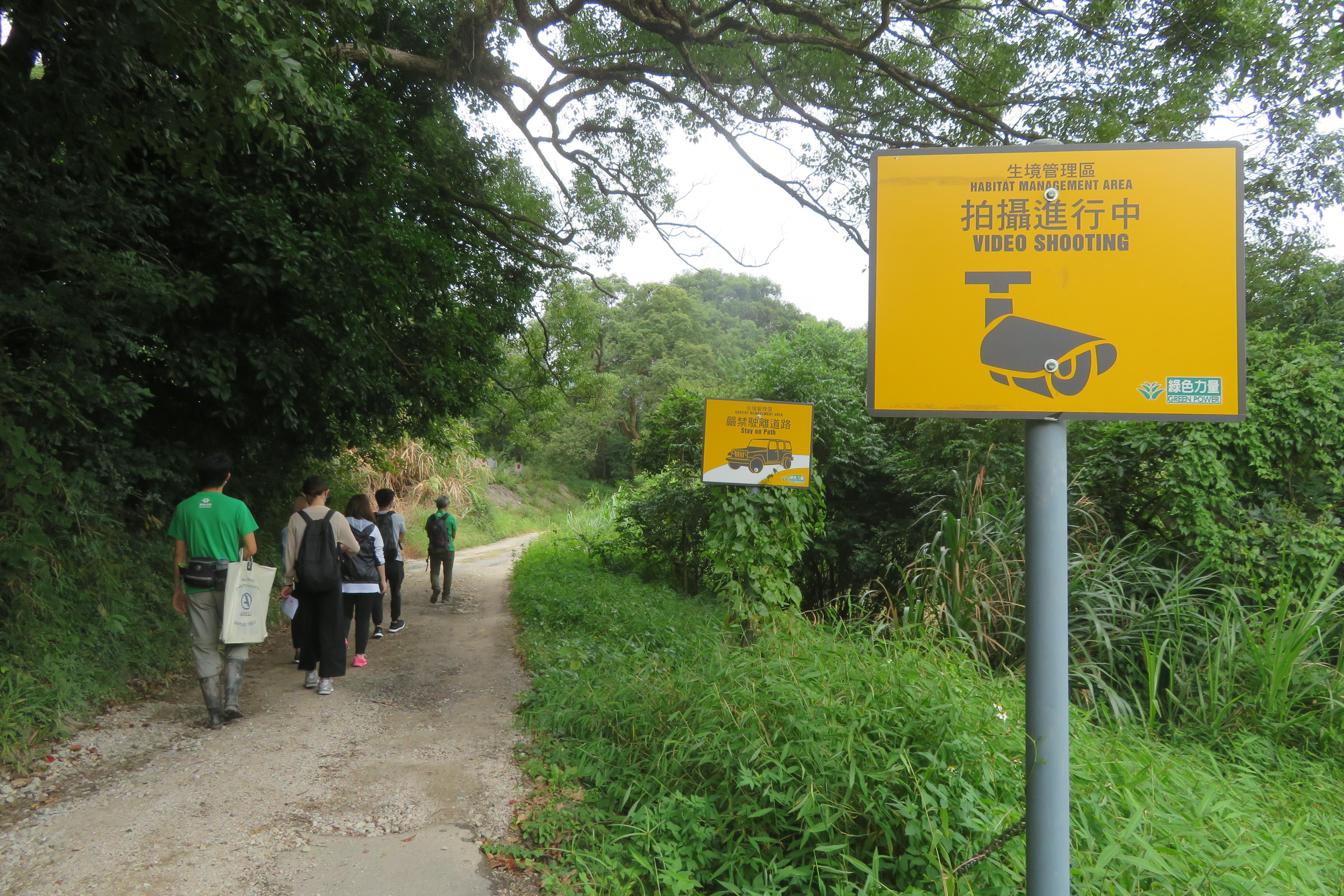 保育範圍內已設置警示牌,提醒人們不要駕車進入保育區,同時監視攝像機正在進行拍攝中。