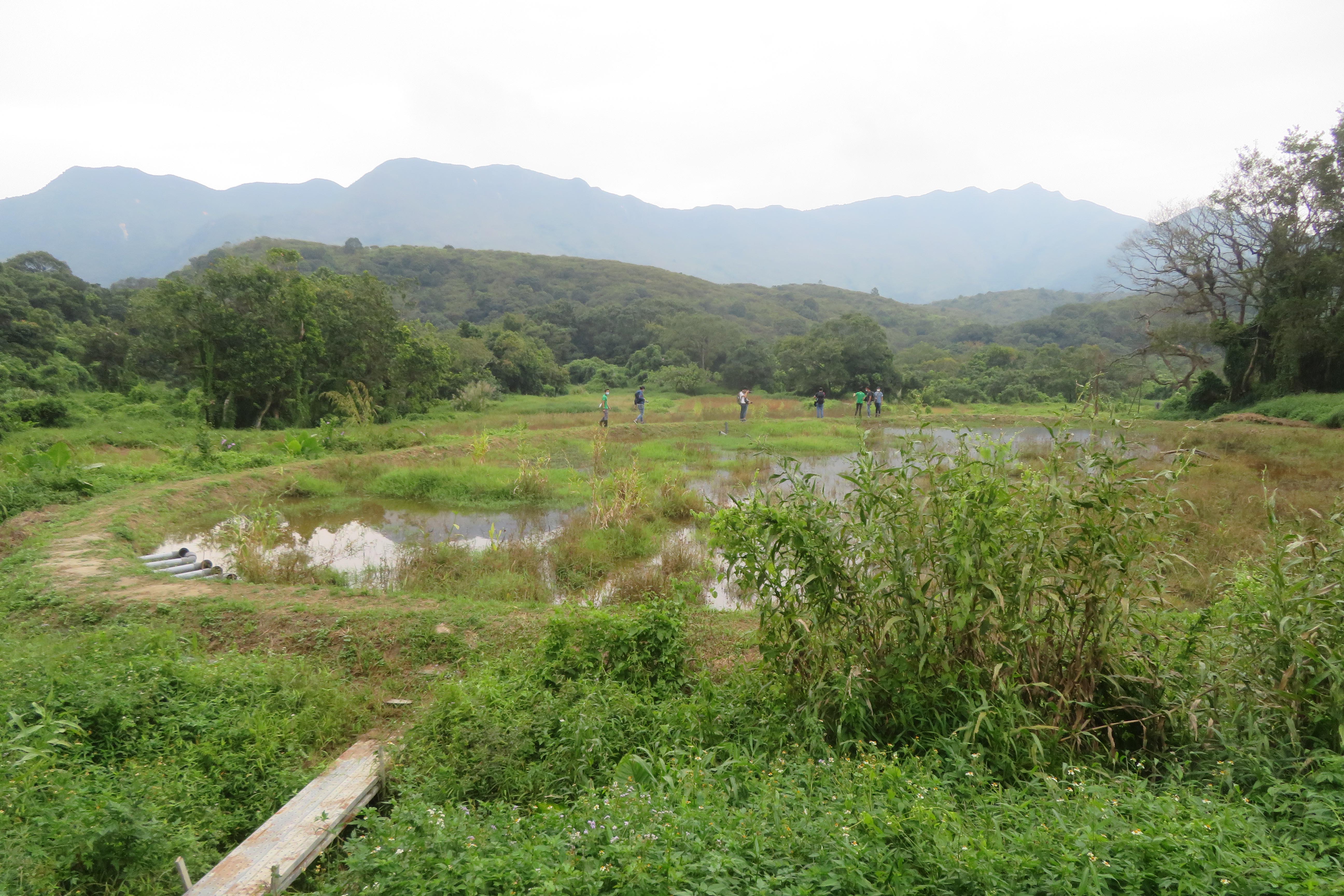 今年5月,一場黑雨,池塘儲滿水,但新做的厚實堤壆一下子承受不了,部分塌毀,經兩周時間緊急維修至今安好,生態池塘及人工沼澤亦初見成效。濕地重建工程後首個濕季進行的生態調查結果顯示,蜻蜓數量及物種多樣性分別較之前多逾3倍及高2至3倍,一些長期沒有紀錄的蜻蜓靜水物如黃翅蜻、紅蜻、雲斑蜻亦重現,只有零星紀錄的班偉蜓、華斜痣蜻、紋藍小蜻則大增。此外,首次於沼澤錄得瀕危物種盧氏小樹蛙,在池塘及沼澤錄得鬍鯰及泥鰍兩種淡水魚。而在管理協議範圍內的香港鬥魚數量保持穩定。隱蔽式攝像機則在張屋祠堂前濕地錄得豹貓、食蟹獴、赤麂、東亞豪豬等哺乳動物。