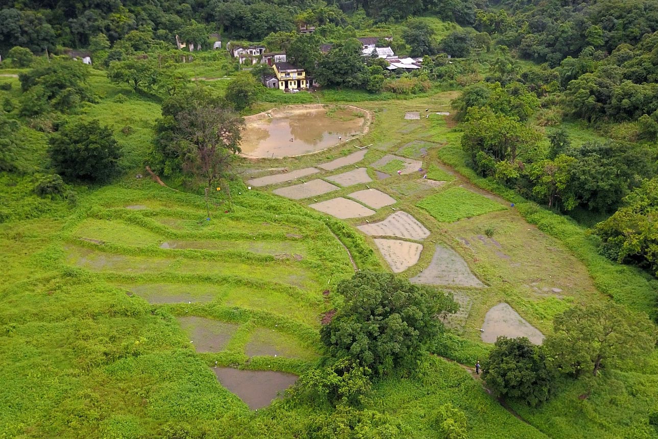 2020年5月池塘及沼澤工程完成,可看到昔日的田壆。(劉健明提供圖片)