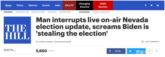 當天,克拉克縣選民登記官員喬·格洛里亞正在回答該縣還剩下多少張尚未計數選票的提問。他表示,自己「不準備透露這些信息」。隨後,一名男子衝進直播現場大罵拜登,打斷了提問。
