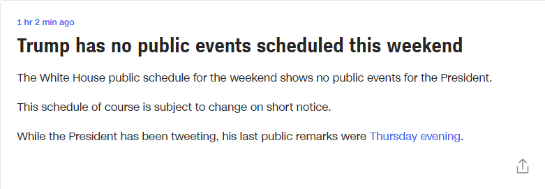 CNN提到,雖然特朗普不斷在推特上發文,但他的最後一次公開講話是在當地時間5日晚。