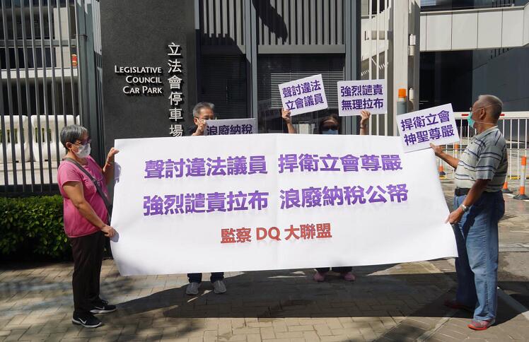 「監察DQ大聯盟」代表林先生表示,疫情之下,香港各行各業都苦不堪言,大家都在共渡時艱。新一年度立法會正正可以為香港市民謀福祉之際,這班「攬炒派」議員卻瘋狂「拉布」,令人厭惡。