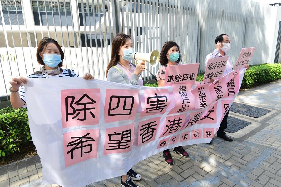 「學生家長關注組」到立法會外請願,譴責反對派惡意拉布、癱瘓議會、置民生議題不顧,形容「教壞細路」,並要求撒消楊岳橋、郭榮鏗、梁繼昌及郭家麒4人議員資格。