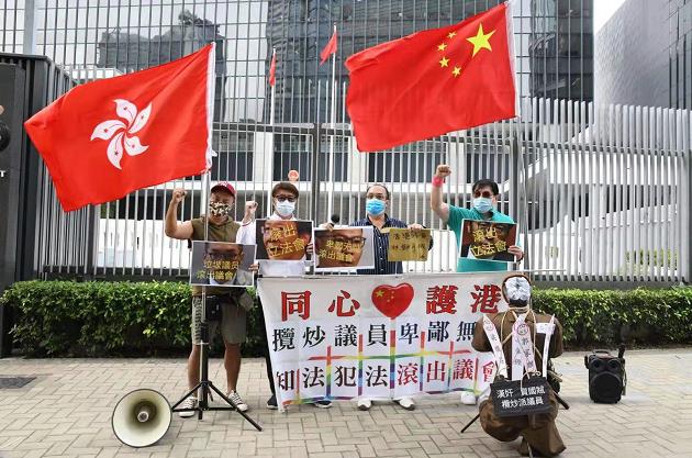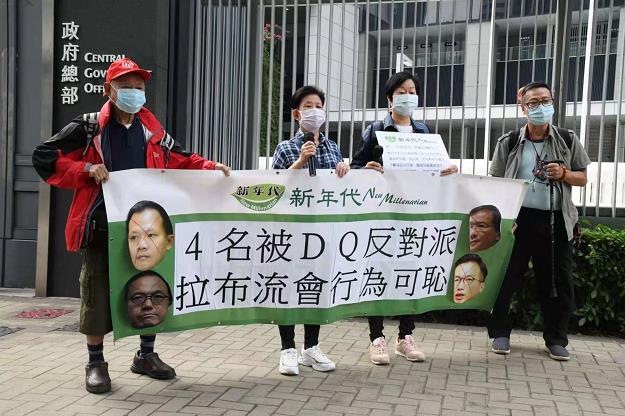 「反黑金反港獨關注組」、「同心護港」、「新年代」、「守護議會」、「大埔監察議會聯盟」、「北區監察議會聯盟」、「沙田監察議會聯盟」、「西貢監察議會連線」等團體亦到立法會外請願,均要求特區政府依法取消上述4名反對派議員的資格。(記者林駿強 蔡啟文攝)