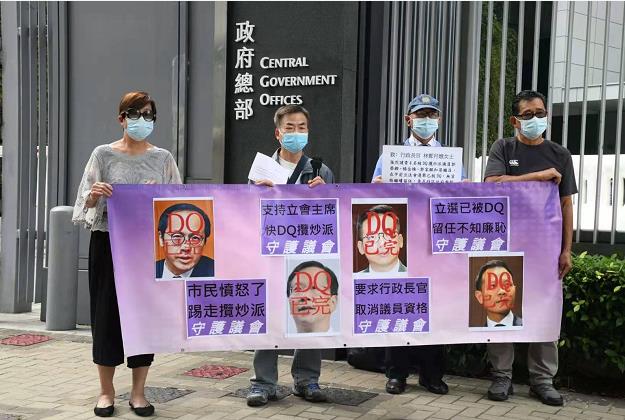 另一方面,多個團體於9日上午相繼到立法會外請願。「監察DQ議員大聯盟」指上述4名反對派議員已在選舉前被取消資格,但4人在延任後,仍與其他反對派議員在議會瘋狂「拉布」,阻礙民生項目通過,妄圖癱瘓立法會履行職能。