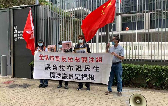 其他到場團體包括「全港市民反拉布關注組」、「全港中小學生家長關注組」、「監察DQ議員大聯盟」、「香港市民反拉布大聯盟」、「國安、港安青年關注組」、「基層互助協會」等,他們批評,近期「攬炒」議員在議會上惡意「拉布」,搗亂會議、癱瘓議會,要求4人滾出立法會,承擔刑責,不要破壞香港法治社會。
