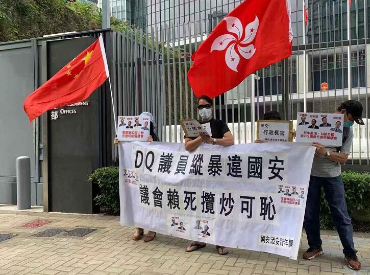 團體指,早前已被DQ的反對派議員郭榮鏗、楊岳橋、郭家麒和梁繼昌涉嫌違反國安法。這4名議員刻意違反就職時的誓言,不但沒有真誠擁護基本法和效忠香港,也沒有履行盡忠職守的責任。团体強烈要求行政長官林鄭月娥和立法會主席梁君彥順從民意,盡快重新審視「攬炒派」議員的延任資格,嚴肅處理阻礙議會運作的政客,盡快恢復立法會的秩序,維護立法會的尊嚴和形象。(記者何加祺、馮煒強)