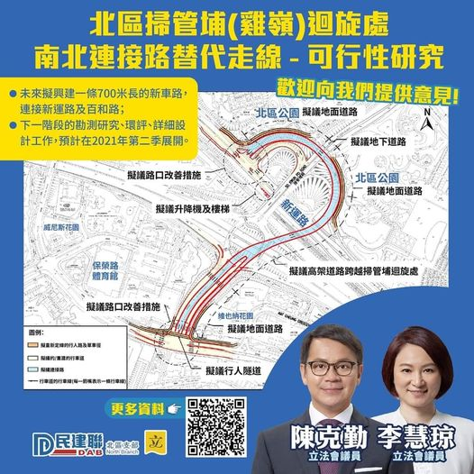 民建聯立法會議員陳克勤在社交平台表示,歡迎市民就北區掃管埔迴旋處的交通規劃給予意見。