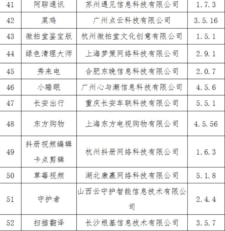 工業和信息化部近日發布《關於下架侵害用戶權益App的通報》,通報稱,2020年10月26日,工業和信息化部向社會通報了131家存在侵害用戶權益行為App企業的名單。截至目前,經第三方檢測機構核查復檢,尚有60款App未按照工業和信息化部要求完成整改(名單見附件)。依據《網絡安全法》和《移動智能終端應用軟件預置和分發管理暫行規定》(工信部信管〔2016〕407號)等法律和規範性文件要求,工業和信息化部組織對上述App進行下架。