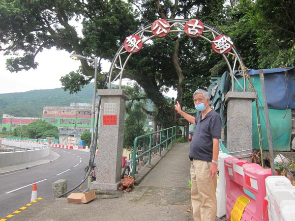 張土勝村長指車公古廟牌坊將拆除,其站着的行人路拓建成行車路。特約記者梁美儀攝