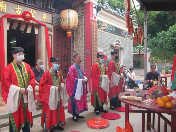 眾喃嘸在車公古廟前做躉符法事。