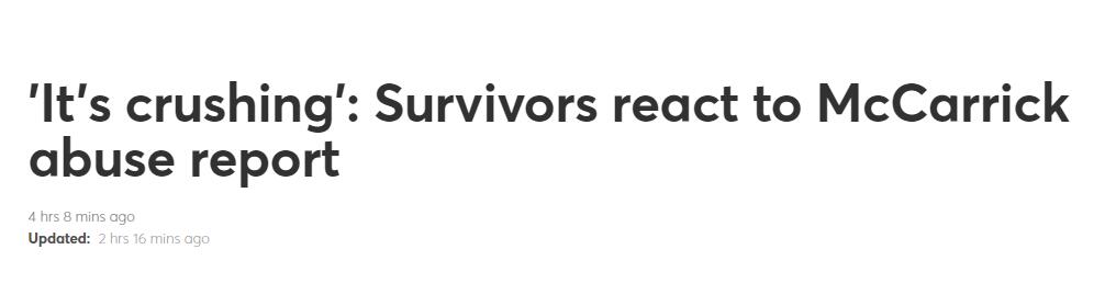 綜合外媒報道,當地時間10日,一份長達449頁的報告曝光梵蒂岡教會包庇神職人員性侵兒童達數十年。11月11日,教皇稱將盡力根除教會內部性侵兒童的罪行。報告指,涉案者是位高權重的華盛頓教區前任總主教與樞機主教麥卡里克。1992-93年間有六封匿名信被寄給美國教會官員和梵蒂岡駐美國大使,稱麥卡里克是「戀童癖者」,但它們都被「忽略」了。調查報告指主教、樞機主教和教皇「輕描淡寫」或駁回了對現年90歲的麥卡里克(McCarrick)「性行為不端」「性虐待」等多項報道。